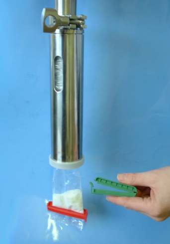 Sealing sacks after sampling or dispensing is often tricky and difficult.