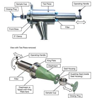 The manual inline sampler is made from FDA acceptable materials and is easy to strip down for cleaning